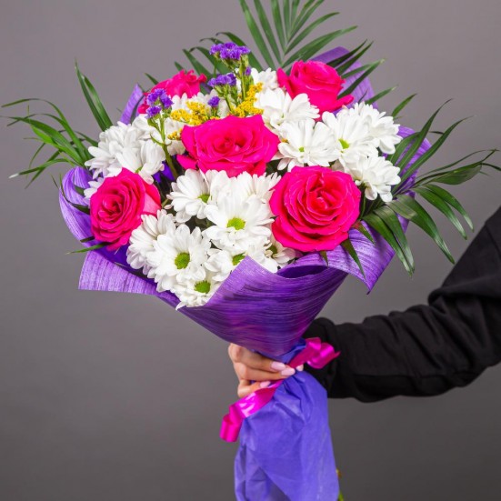Букет из 5 роз и хризантем в Архангельске