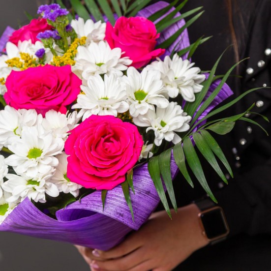 Букетик еще красивее чем на фотографии с сайта, аккуратный и цветы будто только что срезаны! А запах так просто волшебный! Заказала и забрала в тот же день