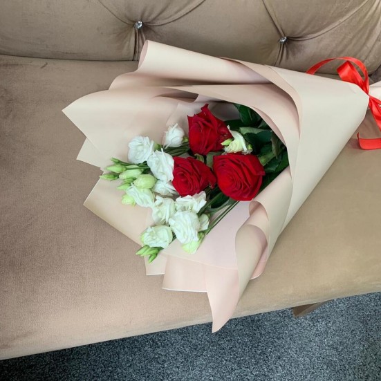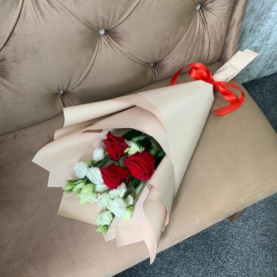 Букет «Эустомы, роза красная» в Архангельске