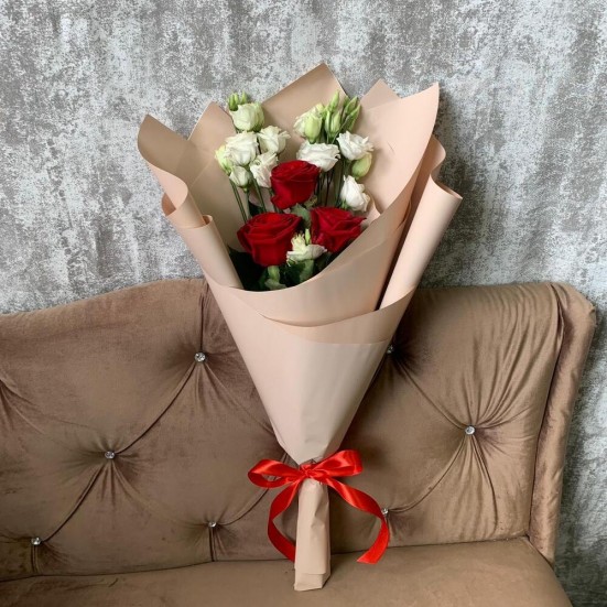 Букет «Эустомы, роза красная»
