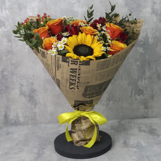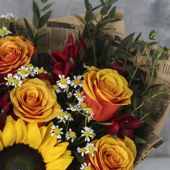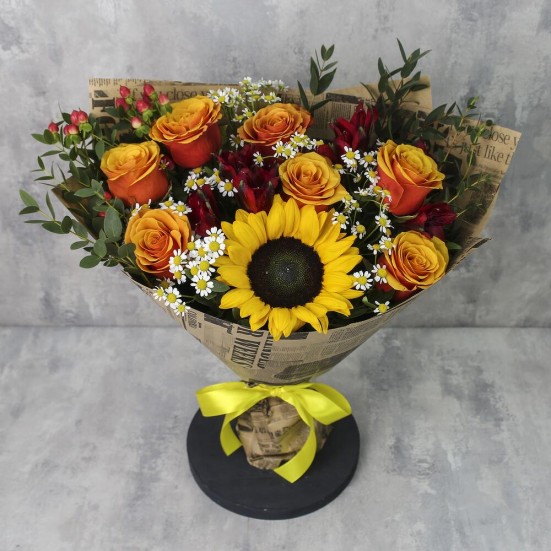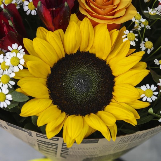 Букет с подсолнухами и другими цветами