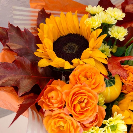 Букет с подсолнухами и хризантемами