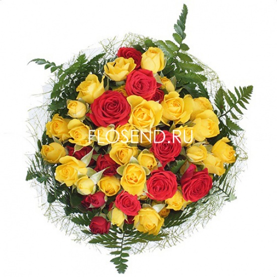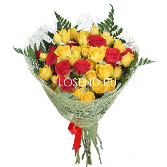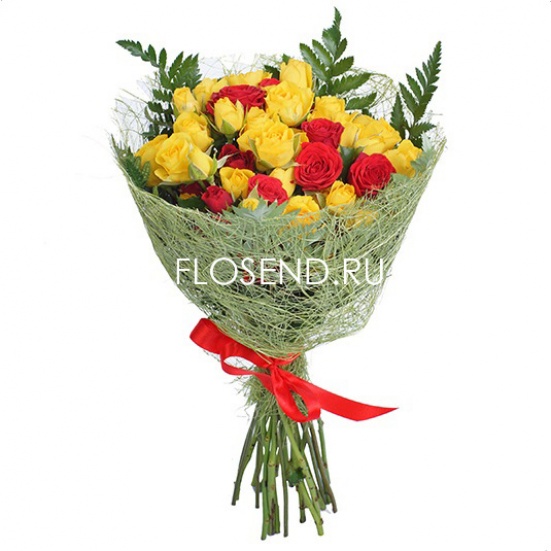 Букет из красных и желтых кустовых роз